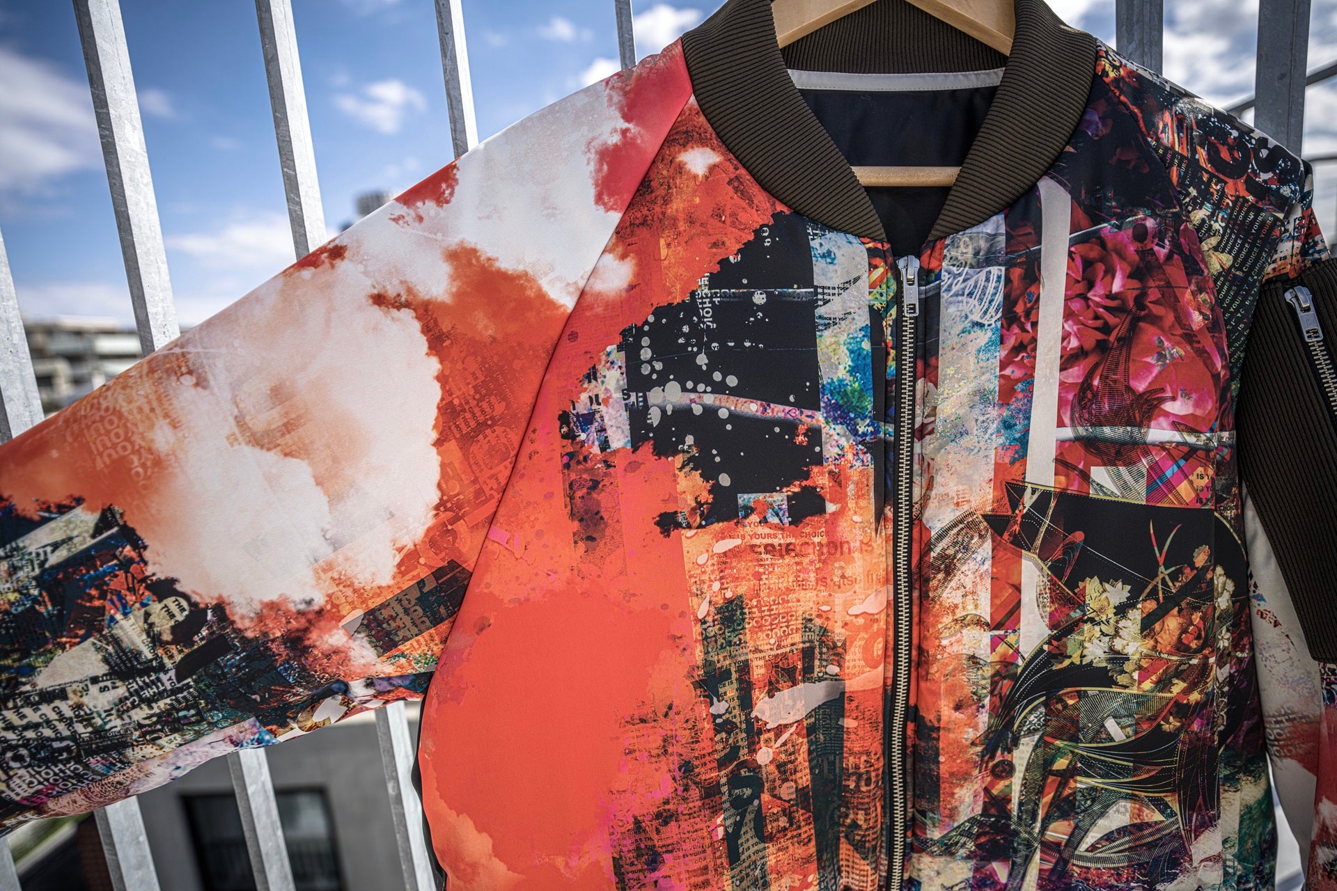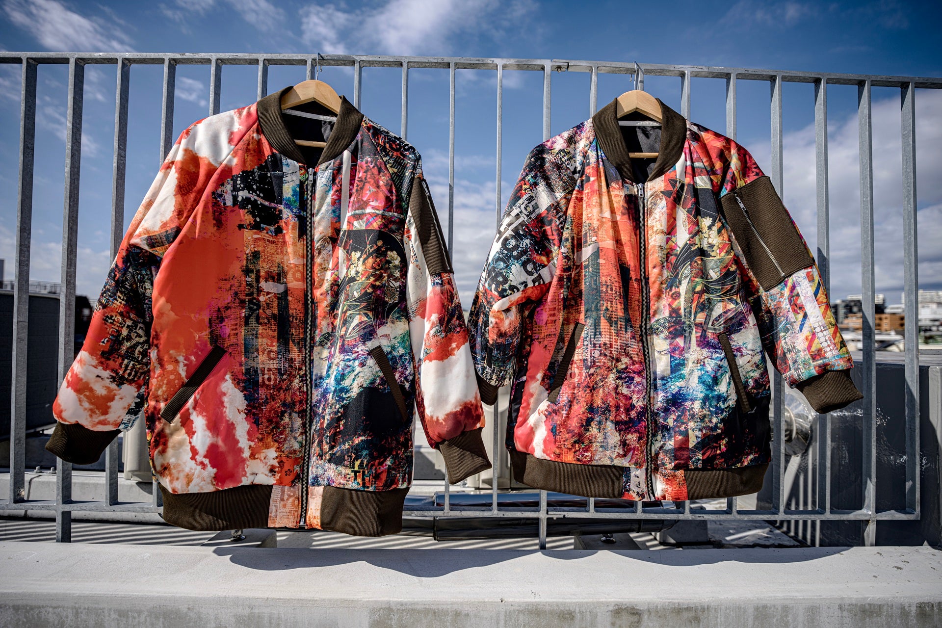 柄イメージはHiguchi作品には珍しく赤系のグラデをメインにスカジャン的な見え方を意識しつつ赤というか朱色と白のグラデで鯉をイメージしています。